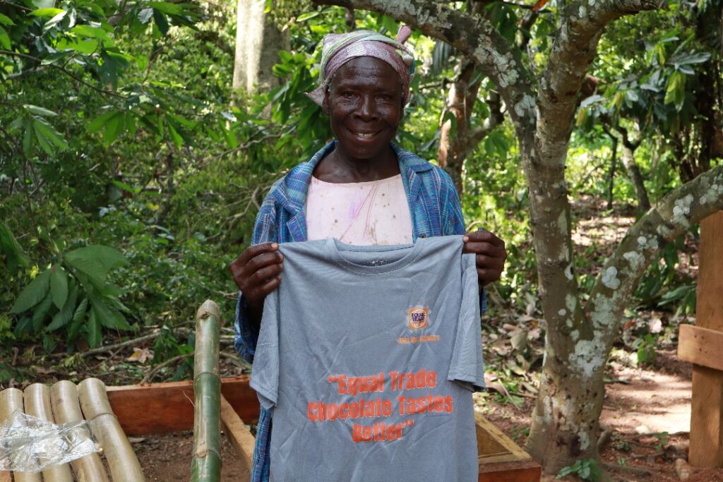 Dus, als u mij vertelt dat de Equal Trade Alliance komt om te helpen, dan stemmen wij daar volledig mee in – zodat u ons kunt helpen, zodat wij genoeg kunnen verdienen om voor onszelf en onze kinderen te zorgen. Wat mij nog meer pijn doet, is dat, hoewel ik de hoofdboerin ben – verschroeid door de zon en door de regen geslagen, plantend, oogstend en het product drogend – ik mijn kind niet naar de middelbare school kan sturen omdat de opbrengst niet genoeg is.